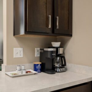 We provide 3 types of coffee makers (Keurig, standard drip, and French press)….plus a complimentary can of Alto Grande; a premium coffee that our Founder brought back from a recent trip to Puerto Rico.