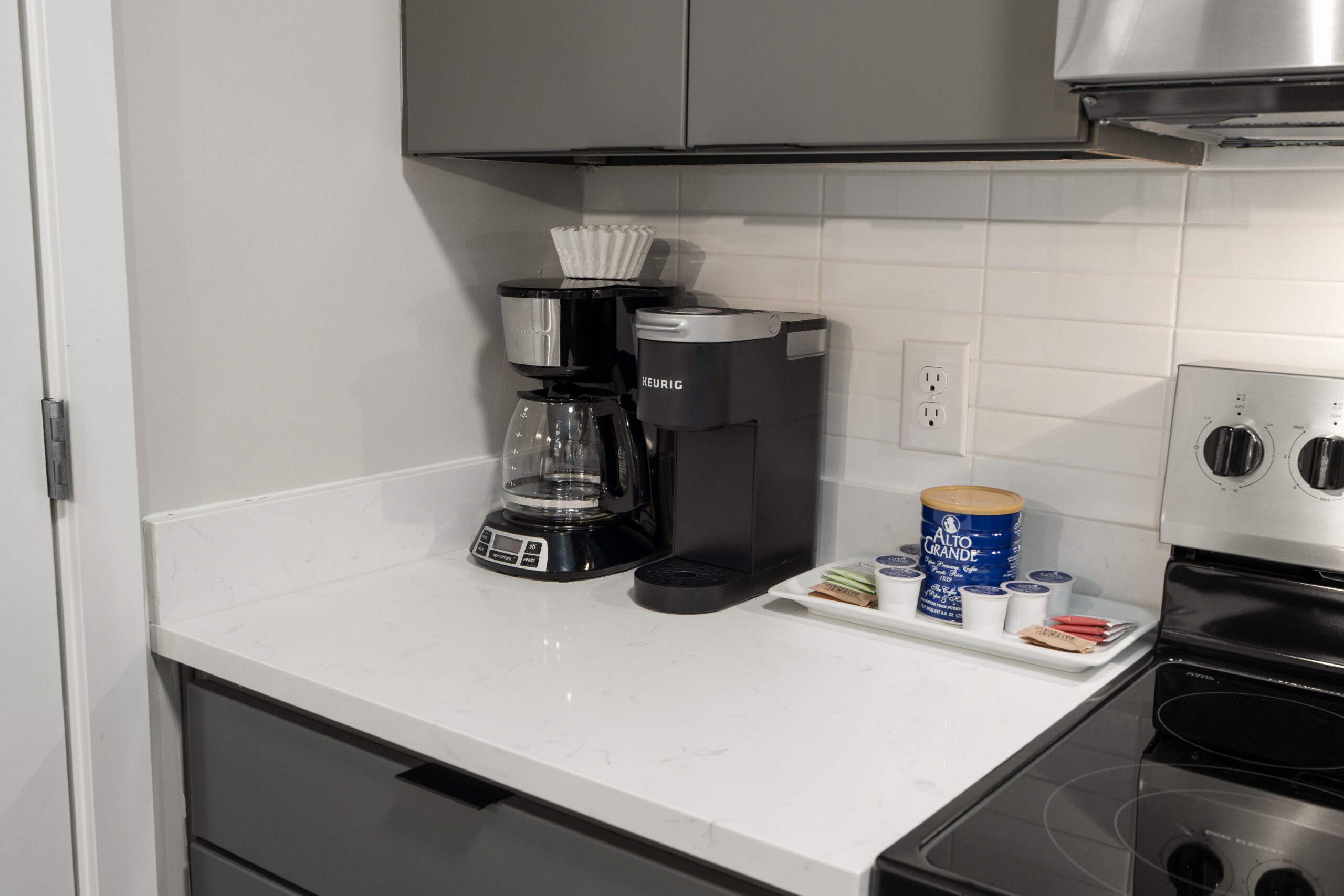 We provide 3 types of coffee makers (Keurig, standard drip, and French press)….plus a complimentary can of Alto Grande; a premium coffee that our Founder brought back from a recent trip to Puerto Rico.