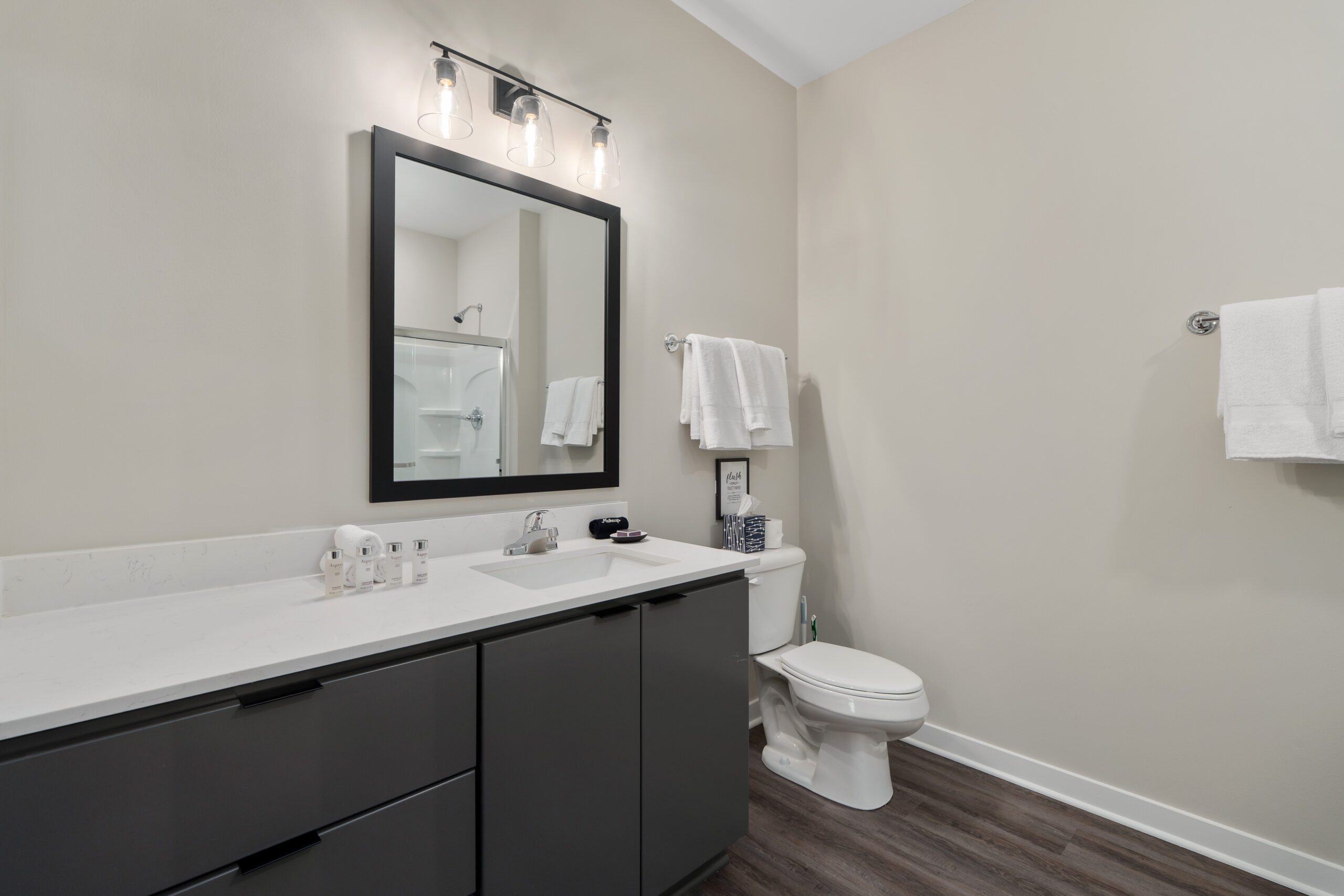 This apartment features two spacious bathrooms: a master ensuite bath that’s accessible via the master bedroom with a walk-in shower, and a guest bath with a shower/tub combo across the hallway from the second bedroom.